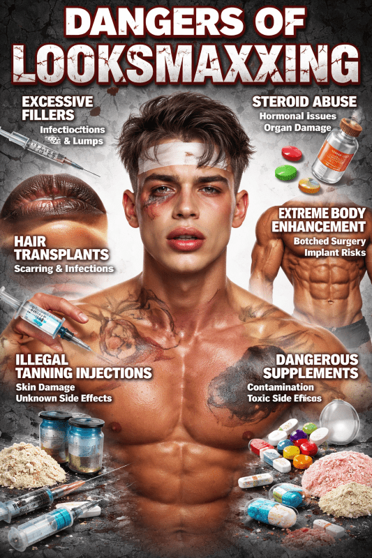While “Softmaxxing” can have health benefits, “Hardmaxxing” carries looksmaxxing dangers that extend far beyond the physical: